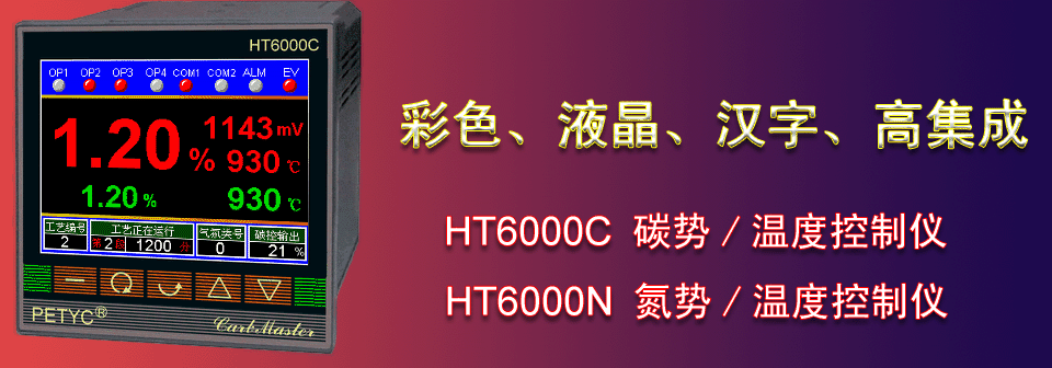 (5) 將本公司多年碳勢控制工藝和儀表開發使用經驗與當前電子技術發展成果結合,2007年開發成功HT6000C彩色液晶漢字可編程碳勢控制儀(碳控儀)和HT6000N彩色液晶漢字可編程氮勢勢控制儀(氮控儀)。